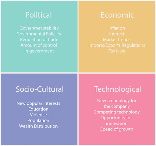 Pest analysis is a strategy framework to evaluate the external environment of a business.
